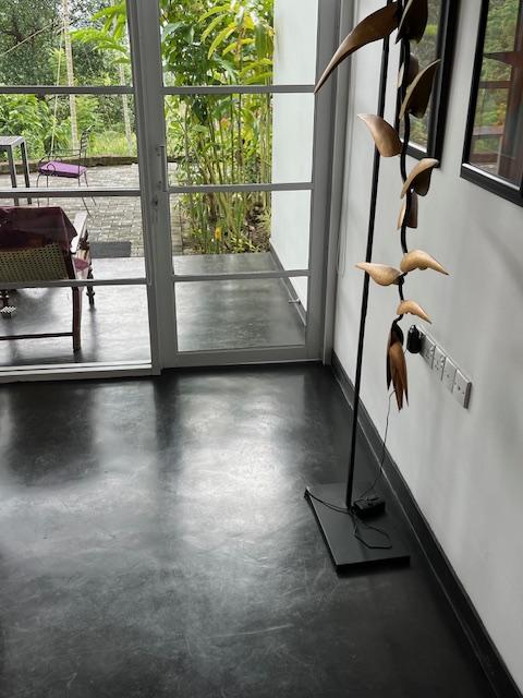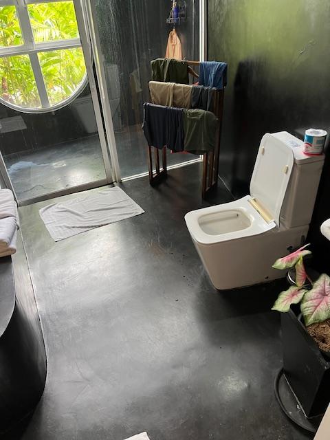 While the room and view are spectacular, the polished concrete floors were designed and subsidized by the local Orthopedic group. The floors are like walking on palm oil (which might be what they use to polish them). Craftily, the toilet is just out of reach for something to grab while standing. Falling forward would result in a full dental replacement from the concrete tub. Falling sideways would be a guaranteed hip replacement. Backwards most likely a sub dural hematoma.